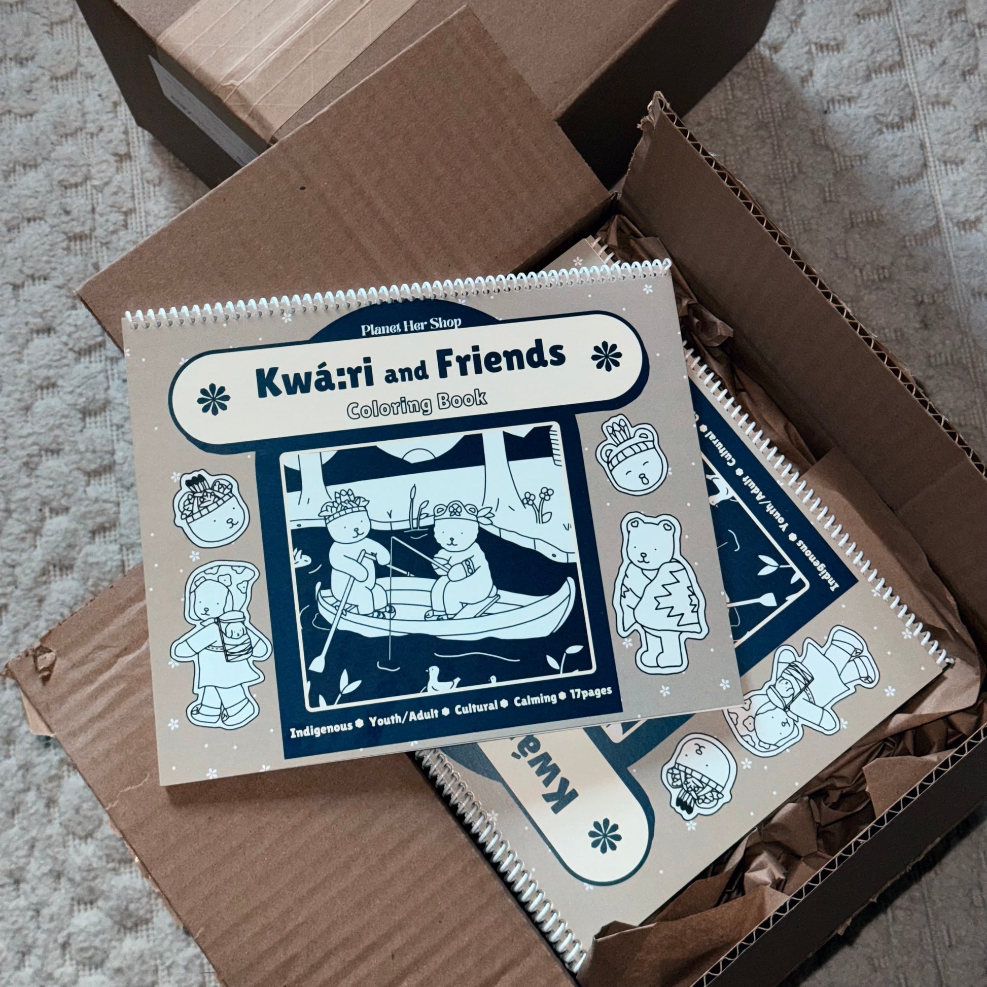Relax and get creative with Kwá:ri and Friends Coloring Book, a peaceful and playful collection of 16 hand-drawn pages inspired by Mohawk culture and events in a little Okwá:ri’s life. Kwá:ri is short for Ohkwá:ri, translates to "bear" in Mohawk. Follow Kwá:ri’s journey filled with traditions, family, and fun. Great for all ages and designed to help you relax, express creativity and promote a good mind.