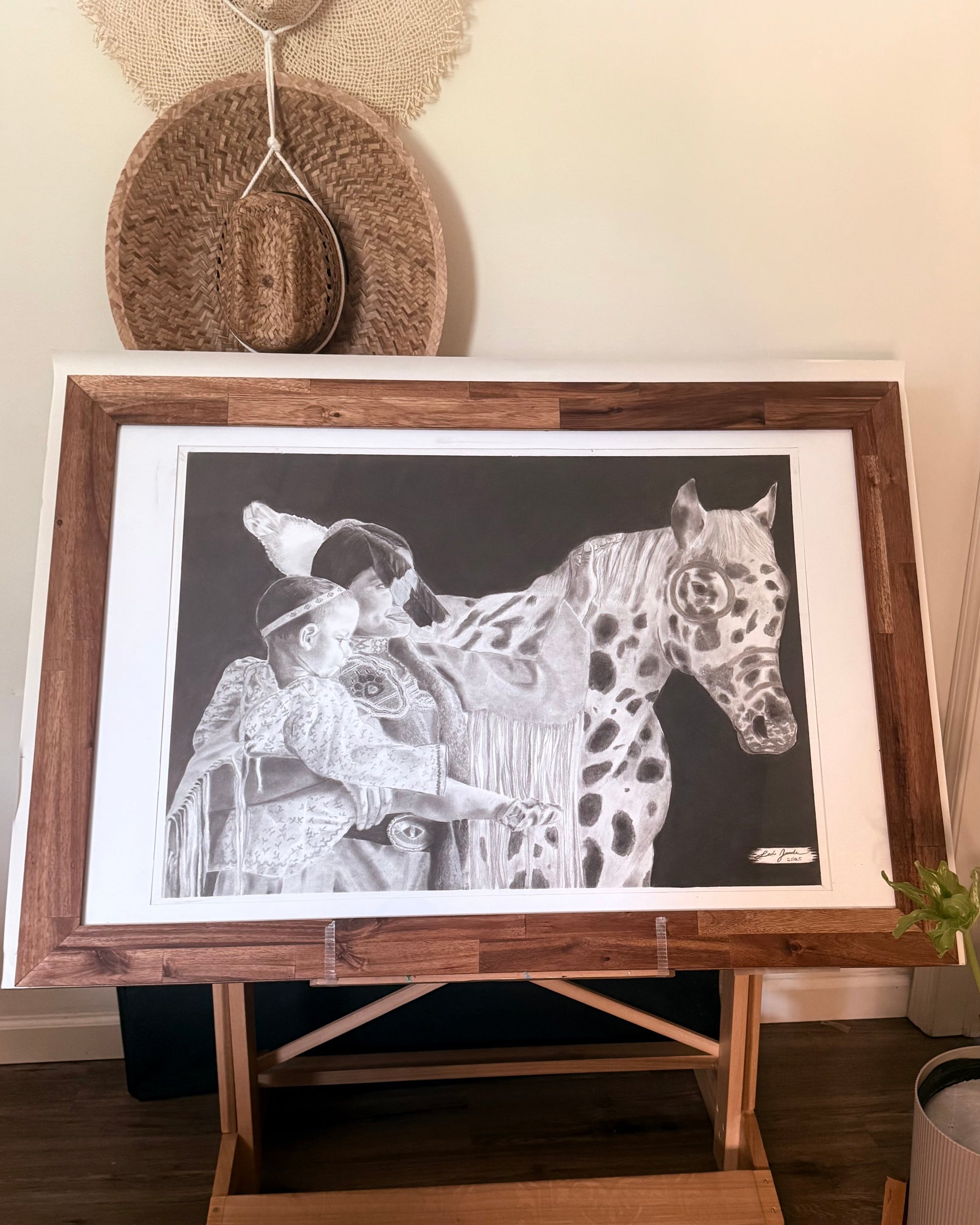 If you admire realism drawings and want to bring this new cultural art piece into your home, I would be honored and I’m positive you’ll be delighted. It’s such a beautiful piece and the wood frame compliments the piece very well. Shipping is available. Certificate of Authenticity included.